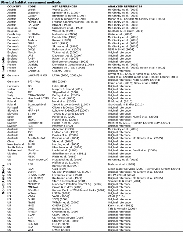 Table 1. Analyzed references for assessment methods for phisical habitats.
