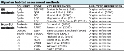 [[File:TableRef2.png|center|thumb|400px| Table 1. Analyzed references for methods of riparian habitat assessment.]]