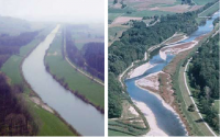 [[Image:Thur_river_before_after_photos.png|400px|thumb|left|alt Widening of the Thur river<ref>ECRR brochure (click [http://www.ecrr.org/pdf/ecrrbrochure.pdf here] for online source)</ref>]]