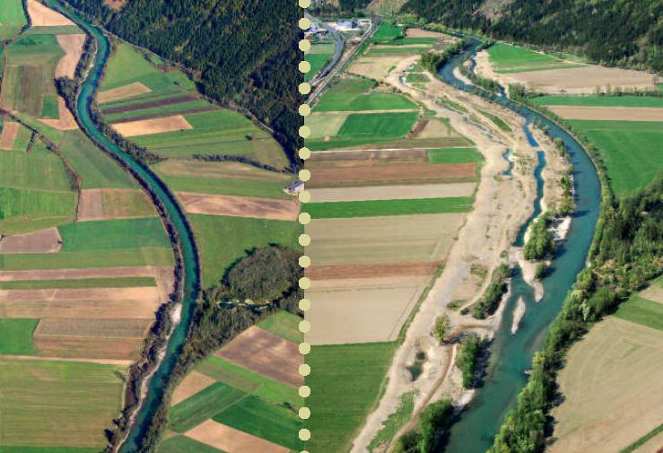 Obergottesfeld before and after the construction of the measures. Taken from Life vein – Upper Drau River (2011)