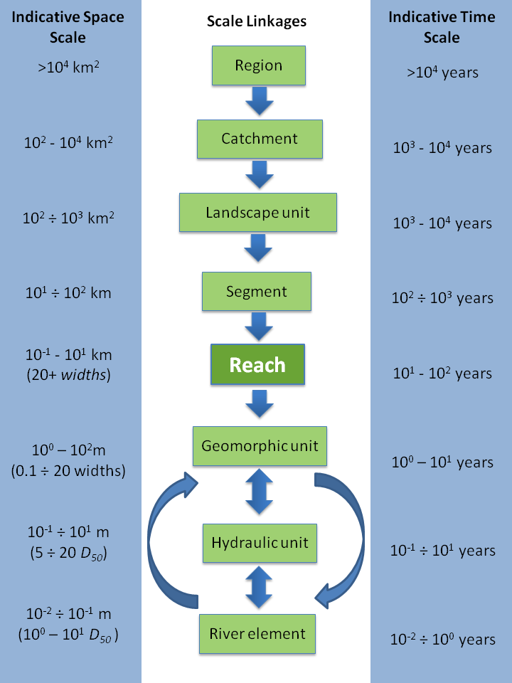 Hierarchy of spatial scales for the European Framework, including indicative spatial dimensions and timescales over which these units are likely to persist.
