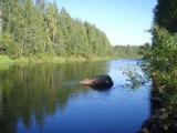 River Kuivajoki is a mid-sized lowland boreal river, with 970 km2 catchment area. The river is 46 km long and descends 89 metres from Lake Oijärvi to Bothnian Bay, northern part of the Baltic Sea. The mean discharge at the site is 12.8 m³/s. In this section the Kuvajoki is a 4th order stream and is assigned to the fish region salmon-European bullhead. The river is included in the Salmon Action Plan by International Baltic Sea Fishery Commission aiming to re-establish wild salmon population in the river. Kuivajoki is protected from hydropower construction by the Finnish Act on the protection of rapids.