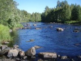 Restoration of channelised riffle sections started in Finland in the 1970's. Since then, in total 2000 riffles and 1000 breeding sites have been restored. In the Kuivajoki river, altogether about 5 km of the river (consisting of multiple riffle sections in the river) were restored in the early 2000's. The stream bottom was rearranged using boulders which were removed from the channel and placed along stream margins during channelization. Also gravel beds were created to provide nursery habitat for salmonids. Hirvaskoski is one of these riffle sections in Kuivajoki river where restoration measures were conducted. Riffles in the upper part of Kuivajoki river are still channelized. The funding for the restorations came from regional water boards.