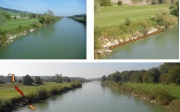 Before river engineering in 1890, the river braided, gravel bars were frequent, islands were present, natural alluvial forest accompanied the river. The complexity and heterogeneity of the habitats were maintained by the natural dynamics of the river itself. Its regulation created a monotonous channel surrounded by high levees and accompanied by embankments which fixed the river. New agricultural land was gained behind the levees for crop production, and between the levees and the embankments for grazing. At the same time, villages and cities were better protected from flood events during which discharge can raise to 1130 m3/sec (in 1999), far from the mean annual flow of 47 m3/sec. The stabilisation of the river bed also permitted to extract drinking water filtrated in the sediment. These human interventions had direct consequences on the hydromorphological conditions, the ecosystem functioning, and its biodiversity. Gravel bars disappeared, secondary channels terrestrialised, characteristic riverine species became rare, floodplain related species disappeared and the complexity of the system was largely reduced (see photos below).